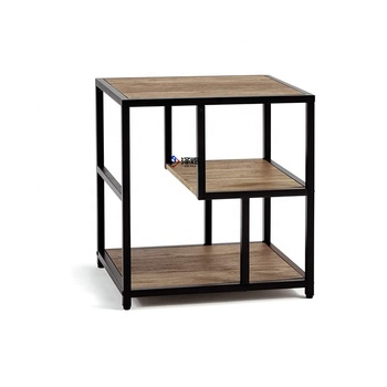 Mesa lateral Industrial, 3 niveles con estante de almacenamiento, aspecto de madera con marco de Metal