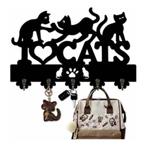 Portachiavi per parete con 5 ganci-appendiabiti decorativo per gatti, per cappotti, cappelli, chiavi, asciugamani, vestiti, decorazioni per la casa