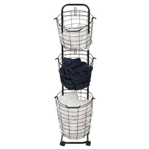Cesto portabiancheria a 3 livelli con cestello in filo rimovibile a 3 livelli, cestello portaoggetti in metallo con carrello portaoggetti con ruota, lavanderia alta