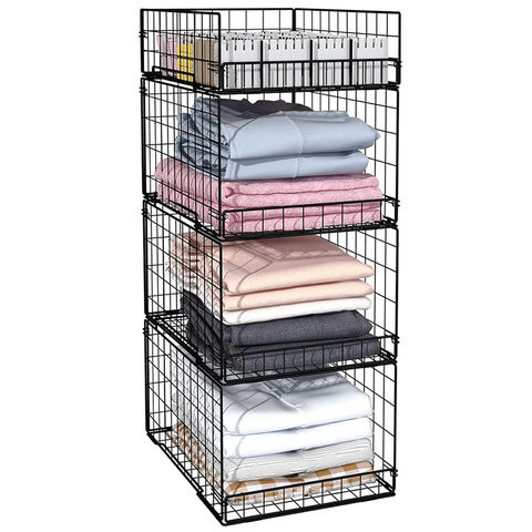 กล่องเก็บของแบบวางซ้อนกันได้4ชั้นกล่องโลหะสำหรับใส่เสื้อผ้า/4แพ็ค